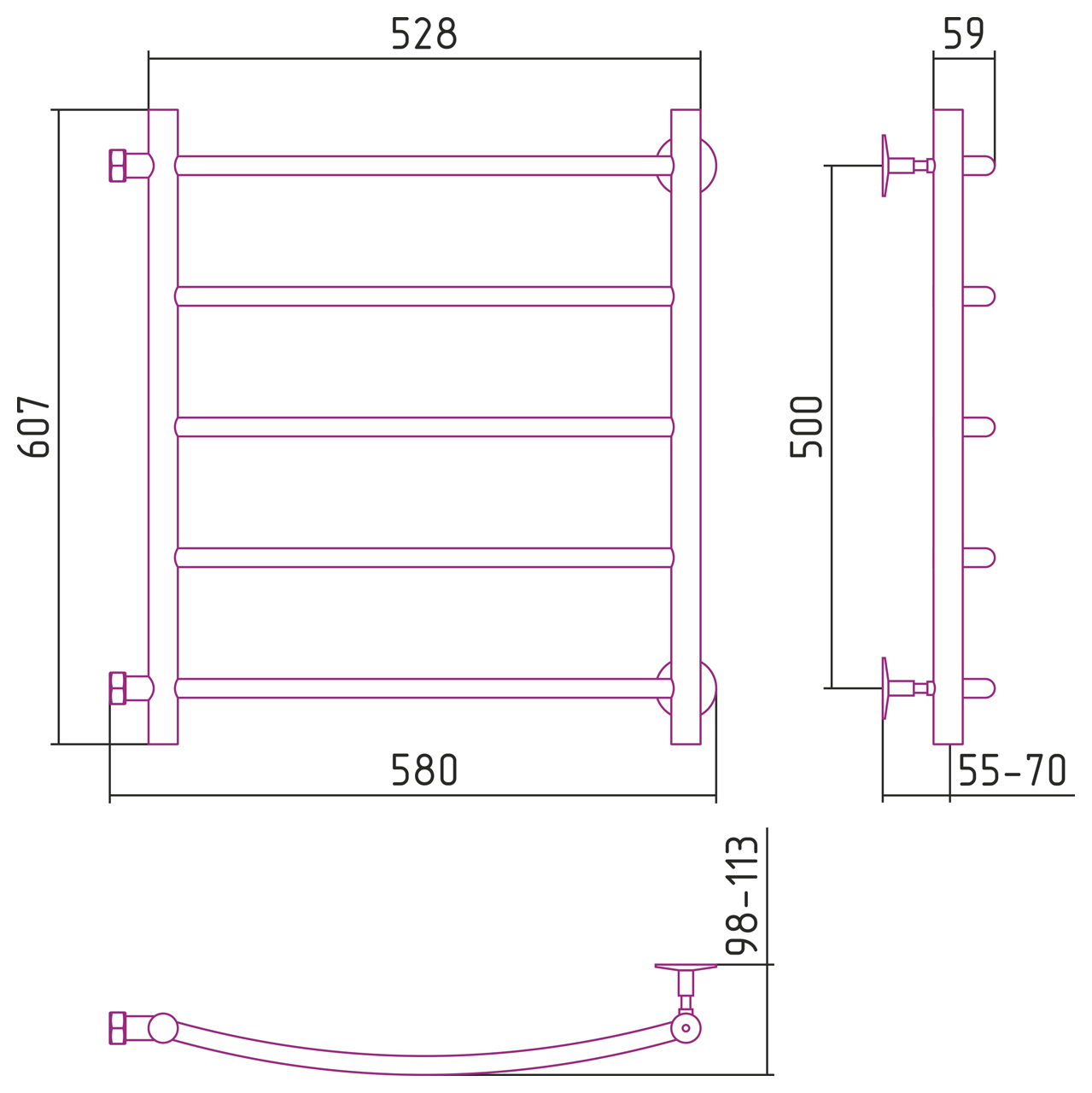 Полотенцесушитель водяной Стилье ВЕРСИЯ-Б2 00612-5050 500х500
