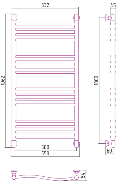 Полотенцесушитель водяной Сунержа ФЛЮИД+ 00-0222-1050 1000х500