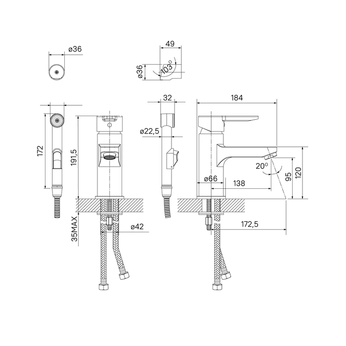 —Смеситель для раковины с гигиеническим душем IDDIS SENA SENSB00i08