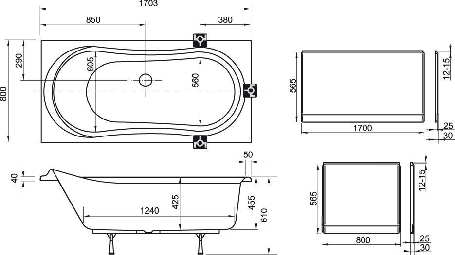 —Ванна акриловая прям. Ravak FRESIA CC01000000 170*80 см.